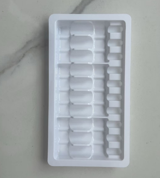 2 ml 10 stukken gesloten flessenbak op maat. Groothandel van 10 PVC-plastic trays voor 1 ml waternaald vacuümvormende inwendige tray voor medicijnen. Op maat gemaakte ampullafles voor medische verpakkingen, inclusief eenmalige blisterverpakkingen voor ampullen van 1 ml, 2 ml, 3 ml, 5 ml en 10 ml.